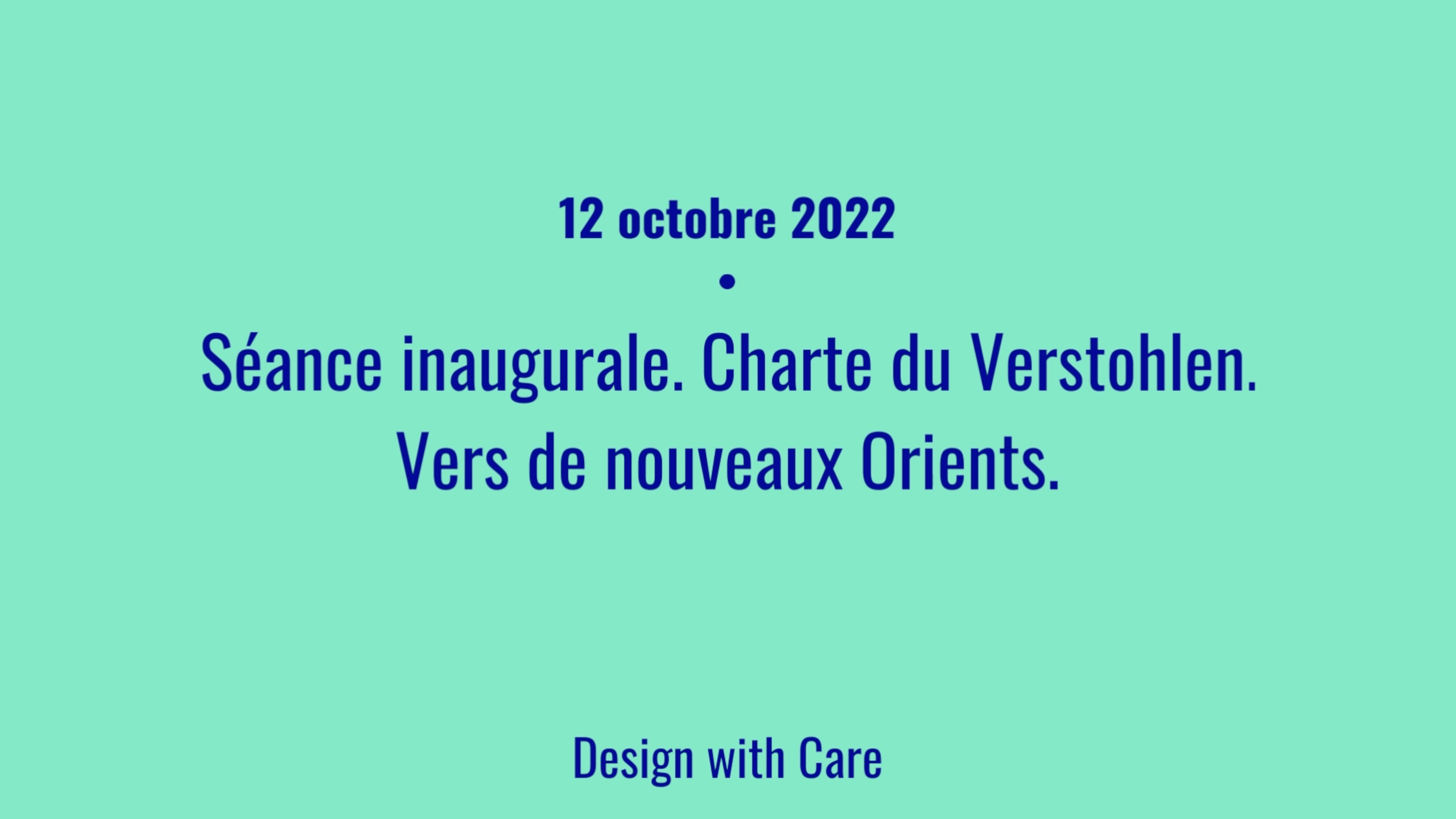 Séance inaugurale. Charte du Verstohlen. Vers de nouveaux Orients