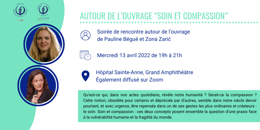 La Chaire de Philosophie à l’Hôpital est ravie de vous inviter le mercredi 13 avril à 19h, dans le Grand Amphithéâtre de l’Hôpital Sainte Anne…